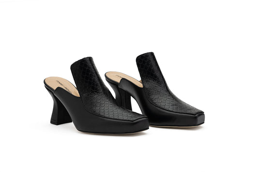 Claudia Black Mule Shoes For Women